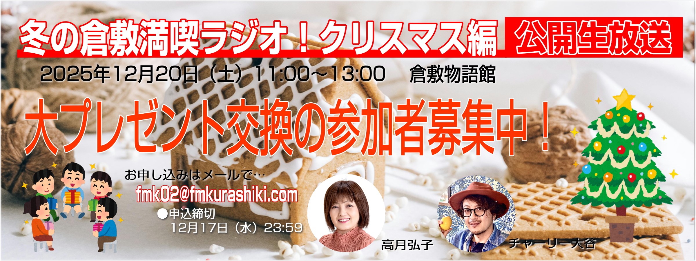 FMくらしき特別番組 冬の倉敷満喫ラジオ!クリスマス編 放送日時 | 2025年12月20日(土)11:00~13:00